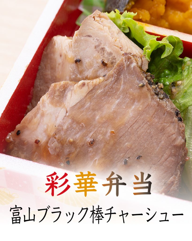 • 富山ブラック棒チャーシュー … 濃厚なタレとブラックペッパーがクセになる味。
