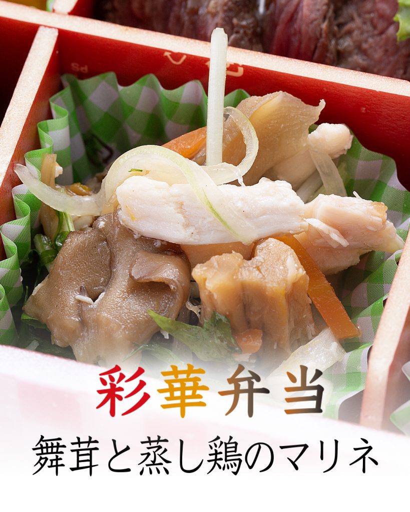 • 舞茸と蒸し鶏のマリネ … 秋の食感と香りを楽しむさっぱり惣菜。